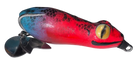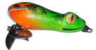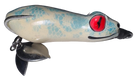 Topwater frog that lurks flat on the surface. Double bladed.