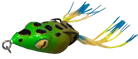 Hook gap that other frogs are jealous of. 5 Natural color patterns to choose from. Welded stainless ring provides added action. This frog will get smashed by any fish wanting to eat topwater.