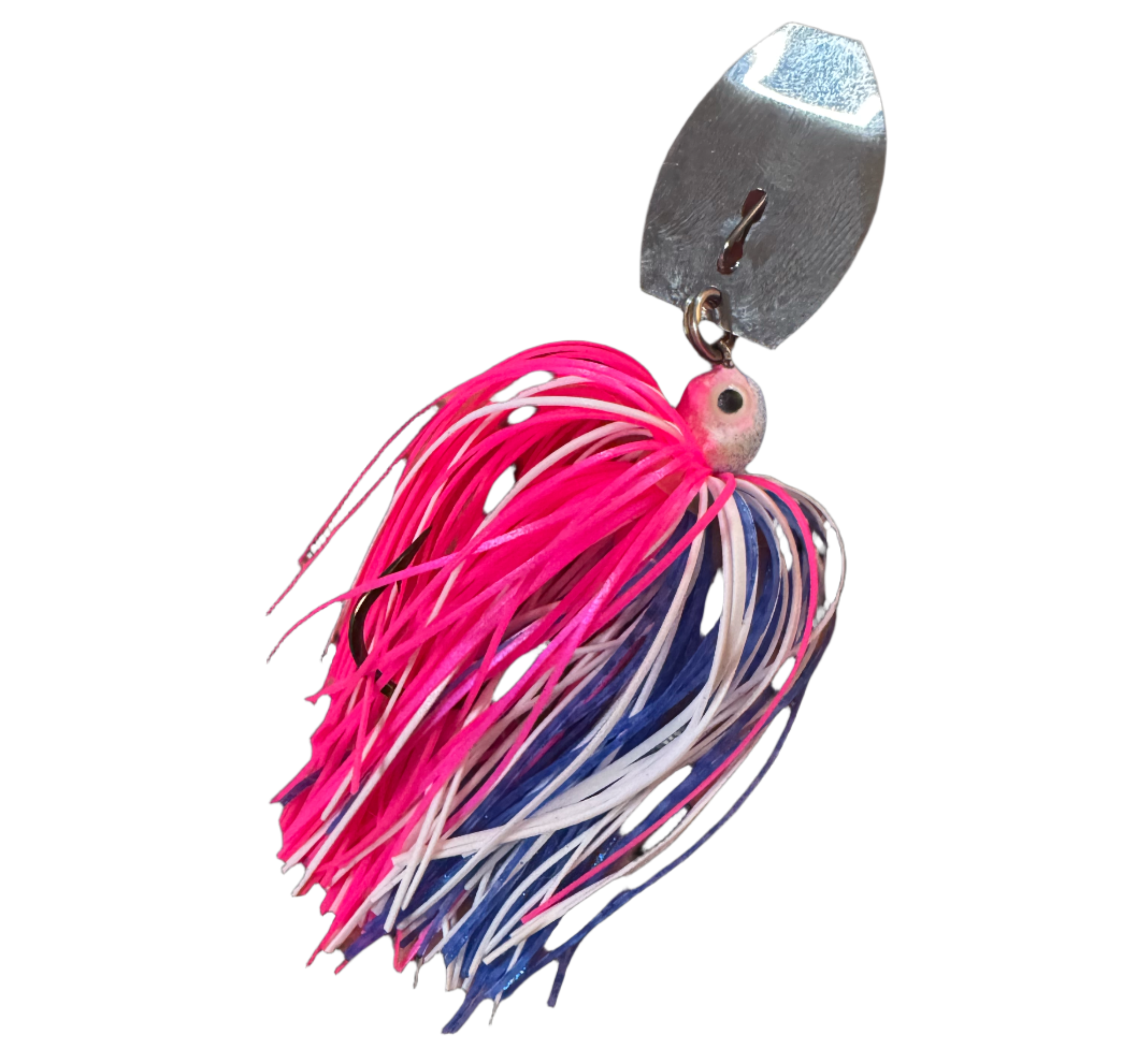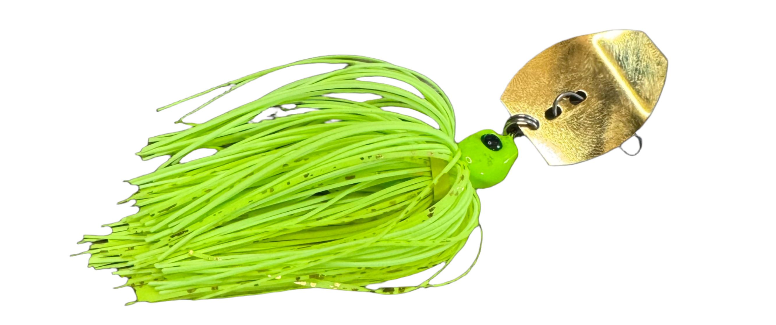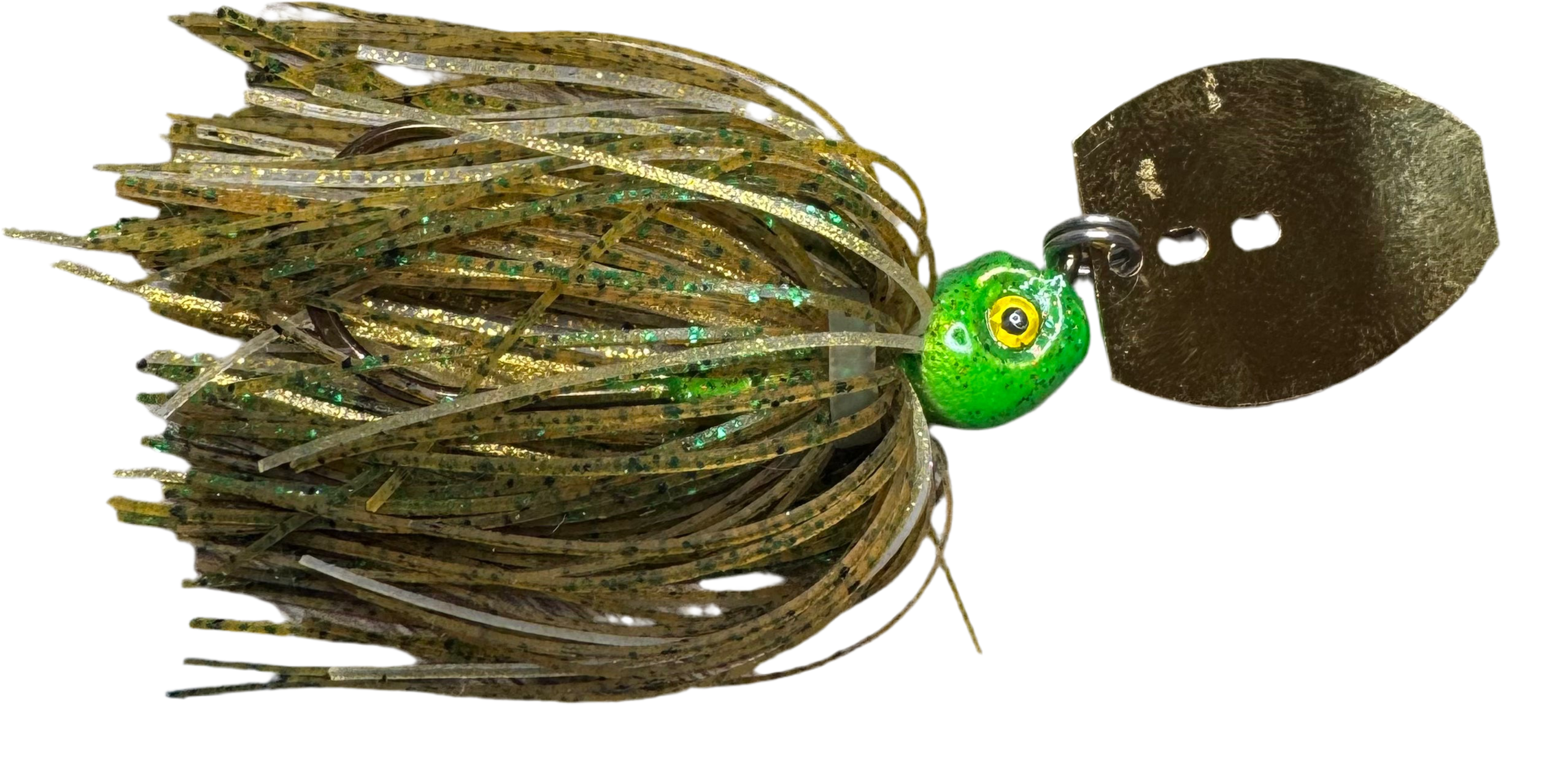 Traditional jig head style bladed jig with straight shank jig hook. Poured and painted in house. Can be fished with or without a trailer.