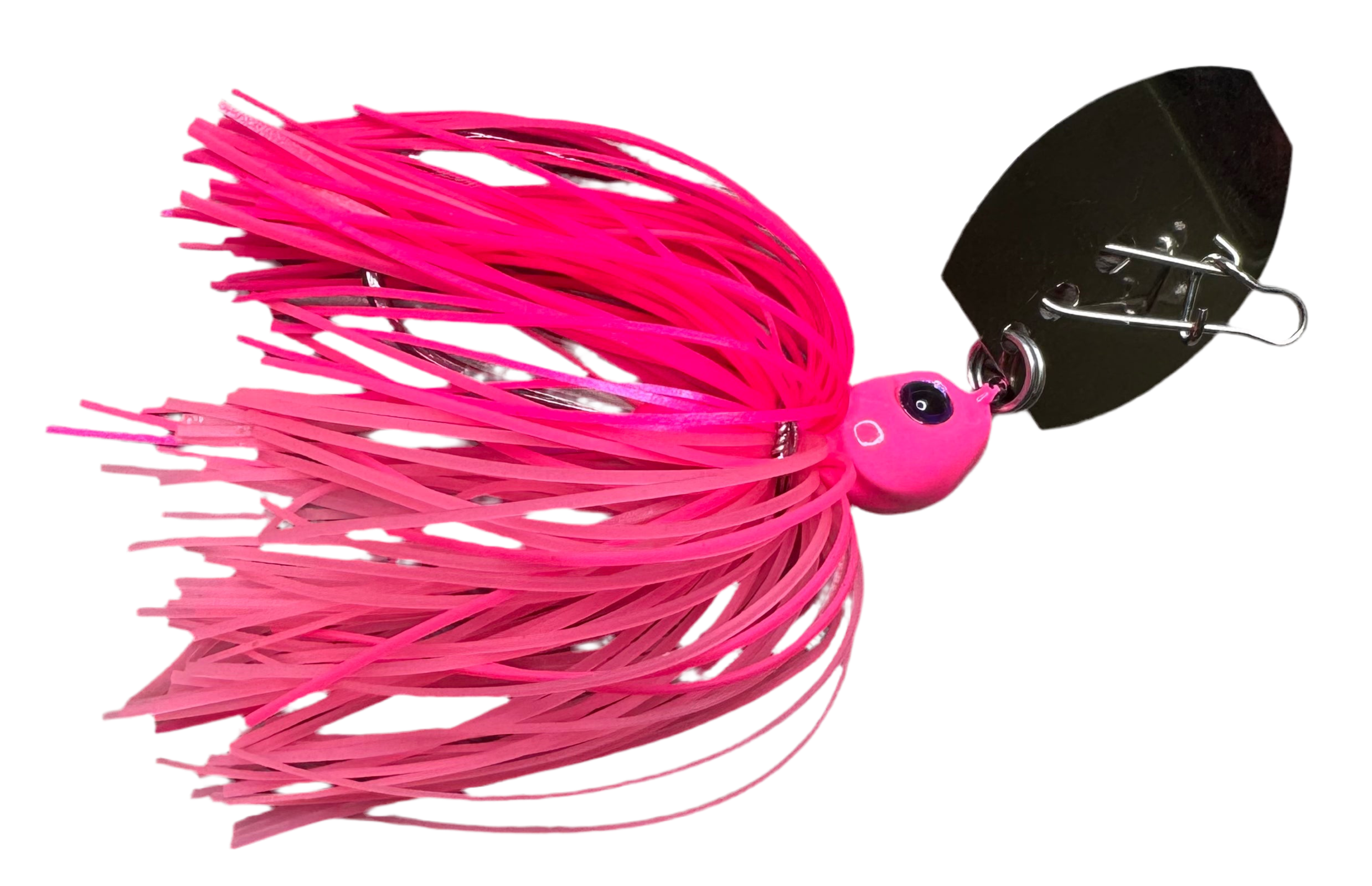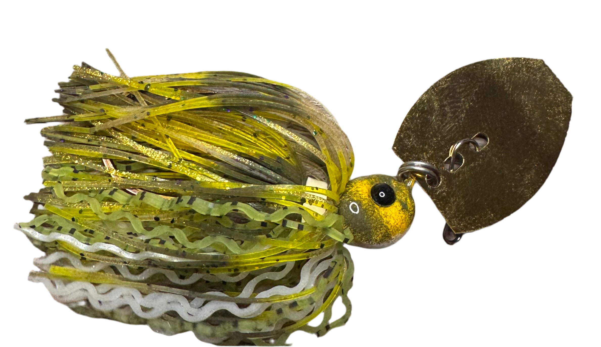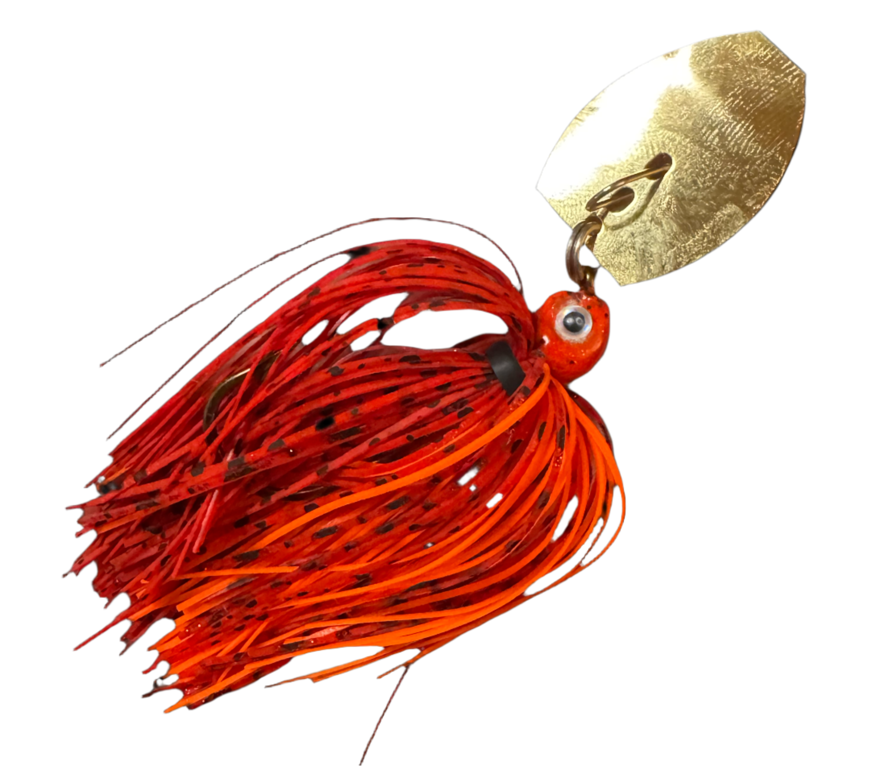 Traditional jig head style bladed jig with straight shank jig hook. Poured and painted in house. Can be fished with or without a trailer.